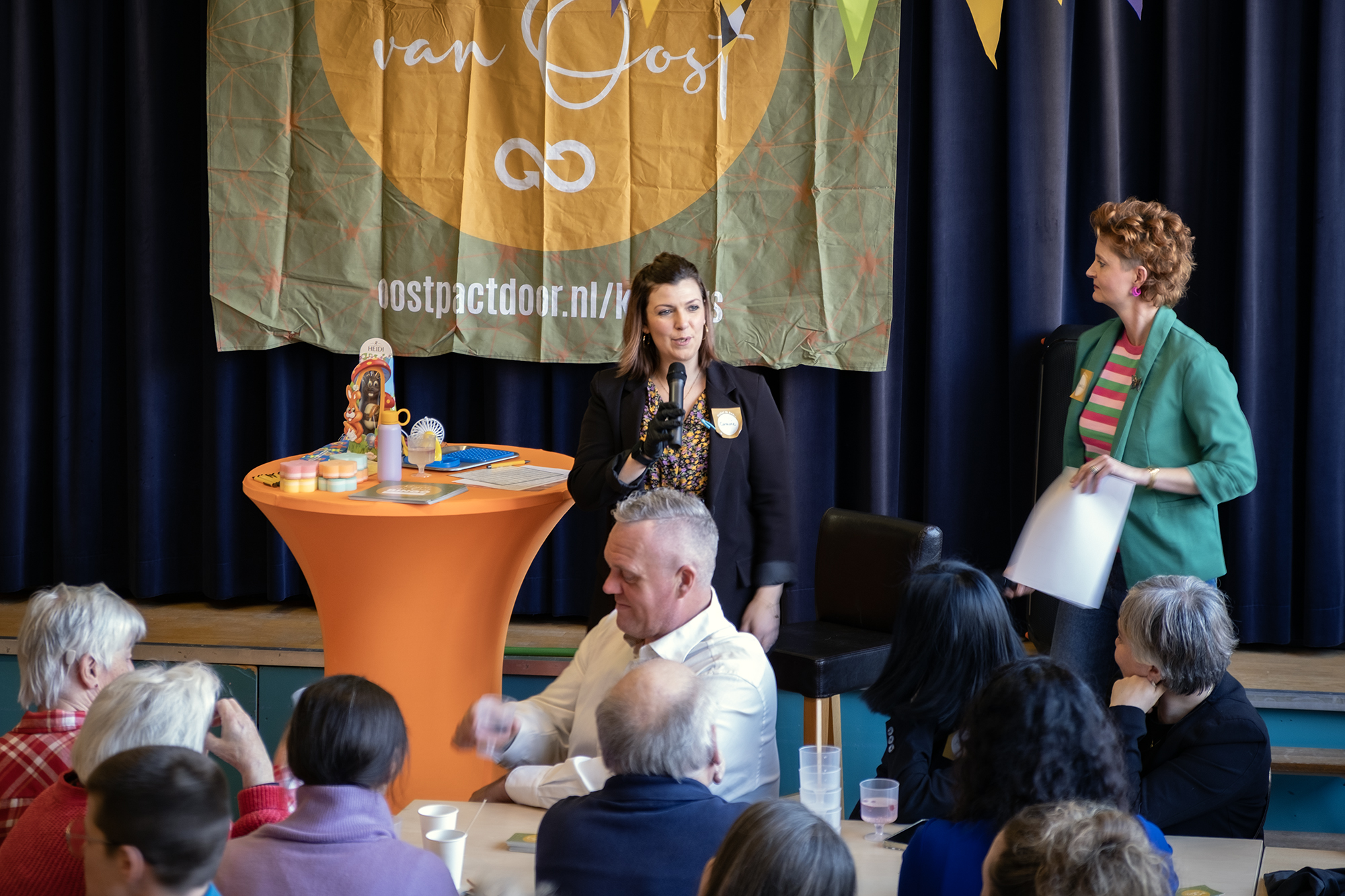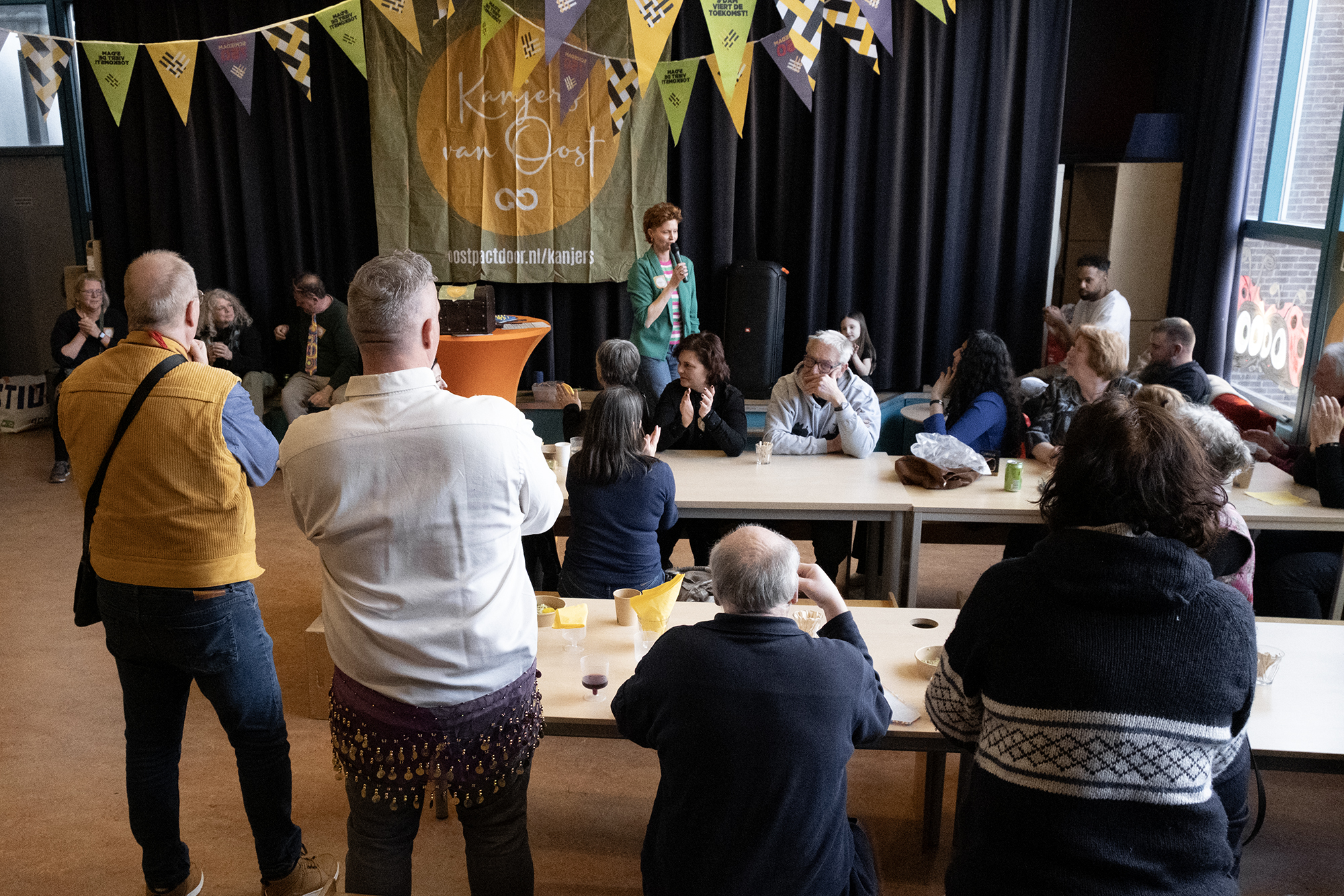 Tussendoor en na afloop stond de Tafel van Oost vol met heerlijke hapjes van chef de cuisine Carmine, met hulp van keukenprinsessen Lilia en Ina – om je vingers bij af te likken. Als kers op de taart keken we samen naar de première van de videoclip van het Lied van Oost.